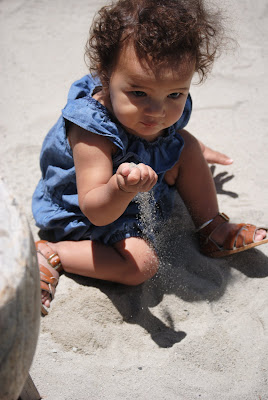 Liv's first encounter with sand, she did taste some, gross!